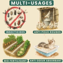 • Utilisation : 🐔 Animaux • 🏡 Maison • 🌱 Jardin
